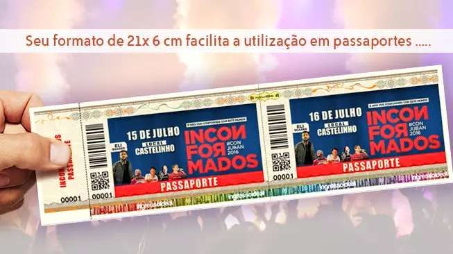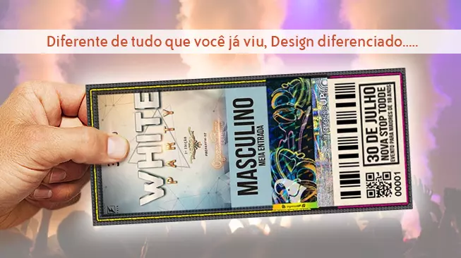 Van – Ingresso de segurança versátil, personalize a posição de numeração, quantidade de tickets e tipo de código de barras como desejar. Muita segurança com Tarja Holografica, Imagic, Papel Moeda, Efeito Coin e mais ítens de segurança.